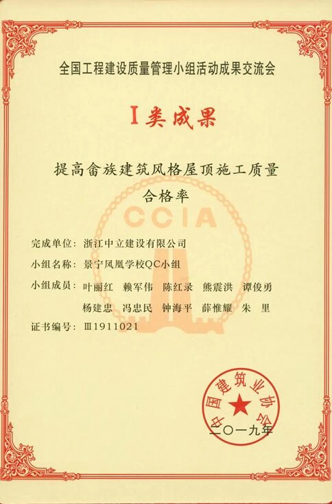 該成果在2019年全國工程建設(shè)質(zhì)量管理小組活動成果交流會發(fā)布,并獲得全國工程建設(shè)質(zhì)量管理小組活動成果Ⅰ類成果獎,是該批(第三批,共四批)發(fā)布的浙江省唯一的一個Ⅰ類成果,這也是麗水地區(qū)首個全國工程建設(shè)質(zhì)量管理小組活動成果Ⅰ類成果。