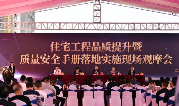 11月6日,麗水市建設(shè)局召開(kāi)“提升住宅工程品質(zhì),全面落實(shí)質(zhì)量安全管理手冊(cè)”現(xiàn)場(chǎng)觀摩會(huì)。中立建設(shè)承建的麗水市金周農(nóng)居新社區(qū)北地塊項(xiàng)目作為此次觀摩會(huì)的住會(huì)場(chǎng),迎來(lái)了浙江省建設(shè)廳工程質(zhì)量安全監(jiān)督處副處長(zhǎng)戴新國(guó),麗水市建設(shè)局黨組成員、總工程師顧華洛,麗水市保障性住房建設(shè)有限公司董事長(zhǎng)彭華及麗水全市各縣(市、區(qū))建設(shè)局分管領(lǐng)導(dǎo),質(zhì)量安全監(jiān)管機(jī)構(gòu)及建筑施工企業(yè)代表們現(xiàn)場(chǎng)觀摩。